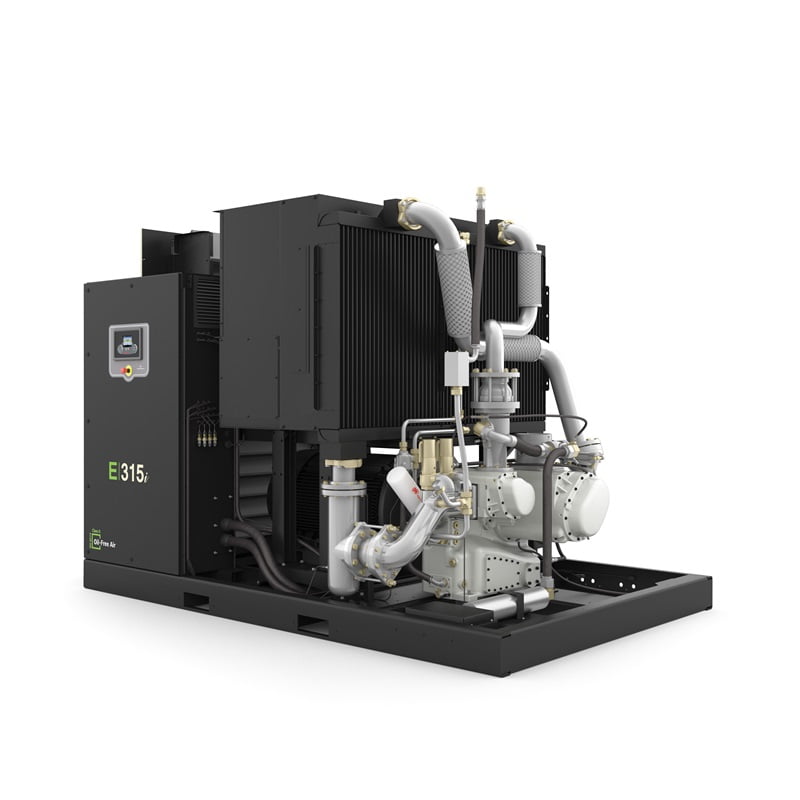 У нових безмасляних гвинтових компресорах серії E 200–355 кВт застосовано передові конструктивні рішення для досягнення безпрецедентної енергоефективності. Компресори Ingersoll Rand E-Series безперервно постачають 100% безмасляне повітря відповідно до стандарту ISO 8573-1: 2010, клас 0, чим забезпечують безумовну надійність в роботі. Компресори класу E-Series пропонують повністю оптимізований пакет для безризикової роботи за порівняно низьких експлуатаційних витрат.